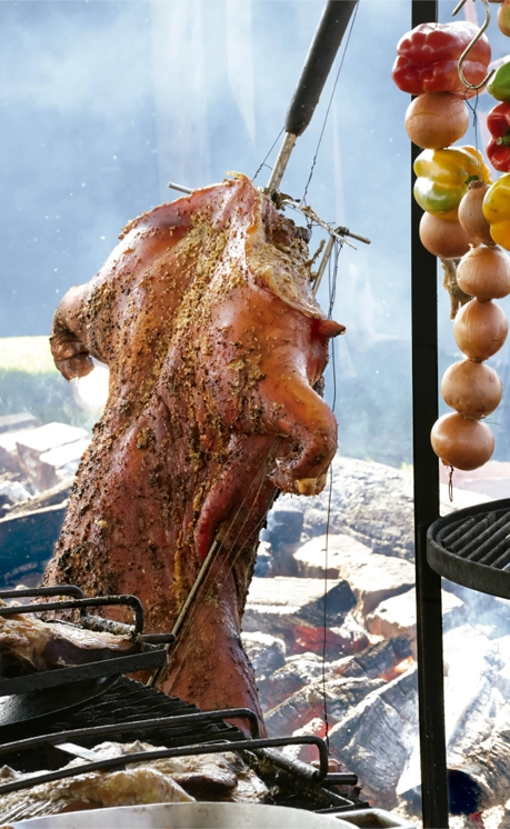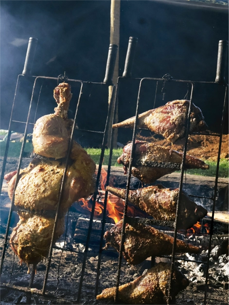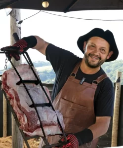 “Nós, gaúchos, utilizamos mais o pernil de cordeiro e o leitão, enquanto aqui são mais comuns a picanha e o frango. O tempero se resume exclusivamente ao sal grosso, podendo ser complementado com um suco cítrico, como limão ou laranja, nas carnes de porco, o que dá um toque especial e perfeito.”