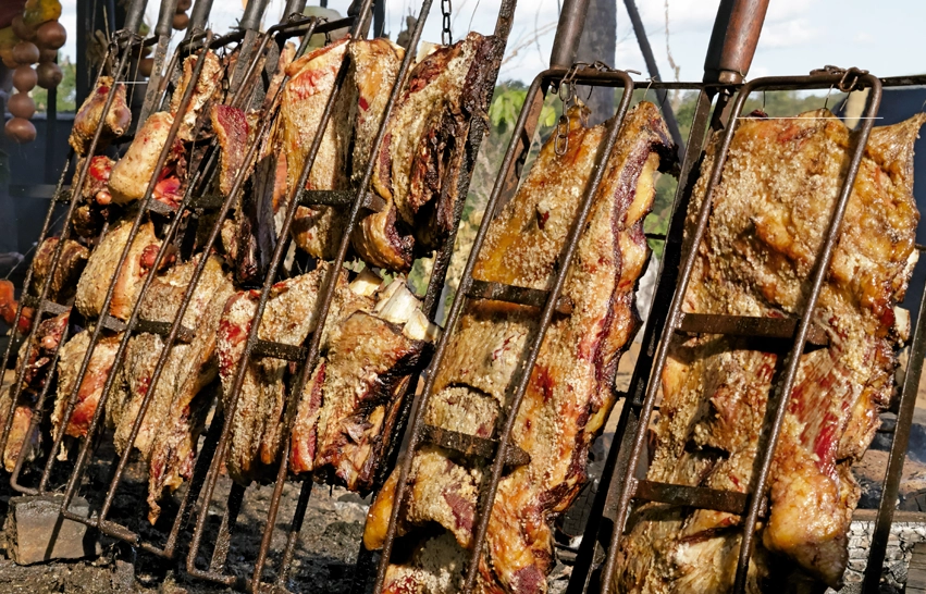 As peças de costela são colocadas com a parte dos ossos voltada para o fogo, somente na última hora são viradas do outro lado, garantindo a suculência