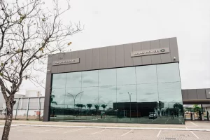 Salão amplo e integrando todos os departamentos de vendas e serviços, com destaque principal para toda a tecnologia ligada a sustentabilidade que gerou prêmios e exportação do conceito para muitos outros países que também atuam com a marca.