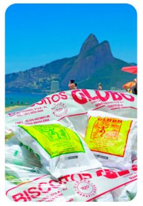Da mesma forma que é vendido nas praias cariocas, o biscoito é a salvação de quem está preso no engarrafamento com fome. Ambulantes levantam o saquinho entre os carros e logo os vidros se abaixam para o motorista comprar. Popular, sim, mas também sofisticado! É isso mesmo: o Globo frequenta, inclusive, ambientes refrigerados, como lojas de aeroportos e cafeterias chiques.